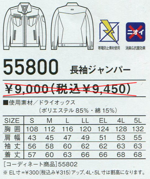 Jawin 長袖ジャンパー 55800 (春夏商品)